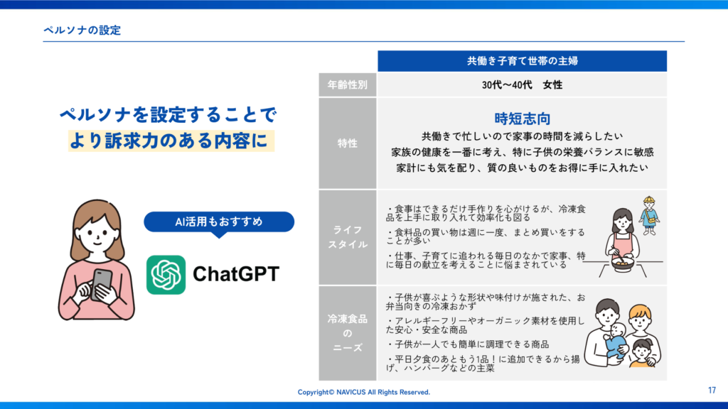 図:冷凍食品メーカーにおけるペルソナ設定の例