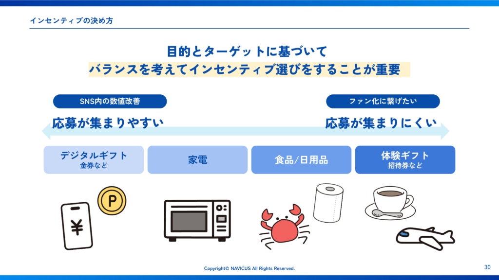 - インセンティブ・テーマ・期間・制作物は、常に「目的」と「ターゲット」に立ち戻って決める