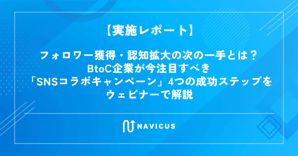 NAVICUSでは、今後もBtoC企業のSNS活用を支援するウェビナーや情報発信を継続していく予定です。また、SNSコラボキャンペーンの企画設計から運営、実施後のフォロワー定着支援まで、一貫したサポートを提供しています。